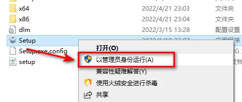 3.选中Setup,鼠标右击选择“以管理员身份运行”