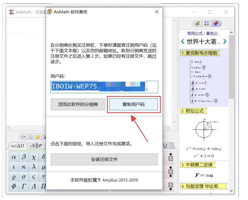 6、粘贴用户码:粘贴复制的用户码,按键盘 Enter,键生成激活文件。