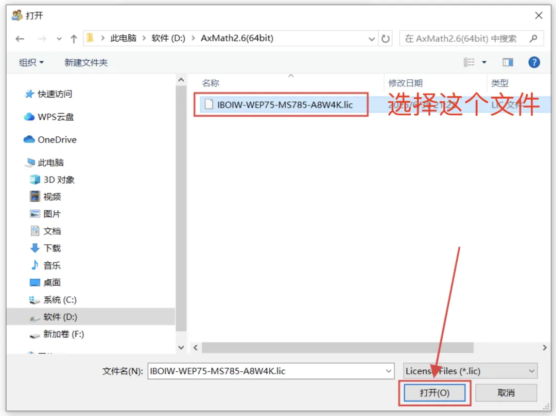 9、选择激活文件:选中生成的注册文件,点击:打开。
