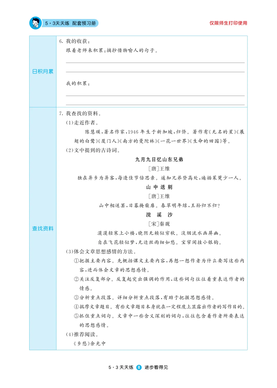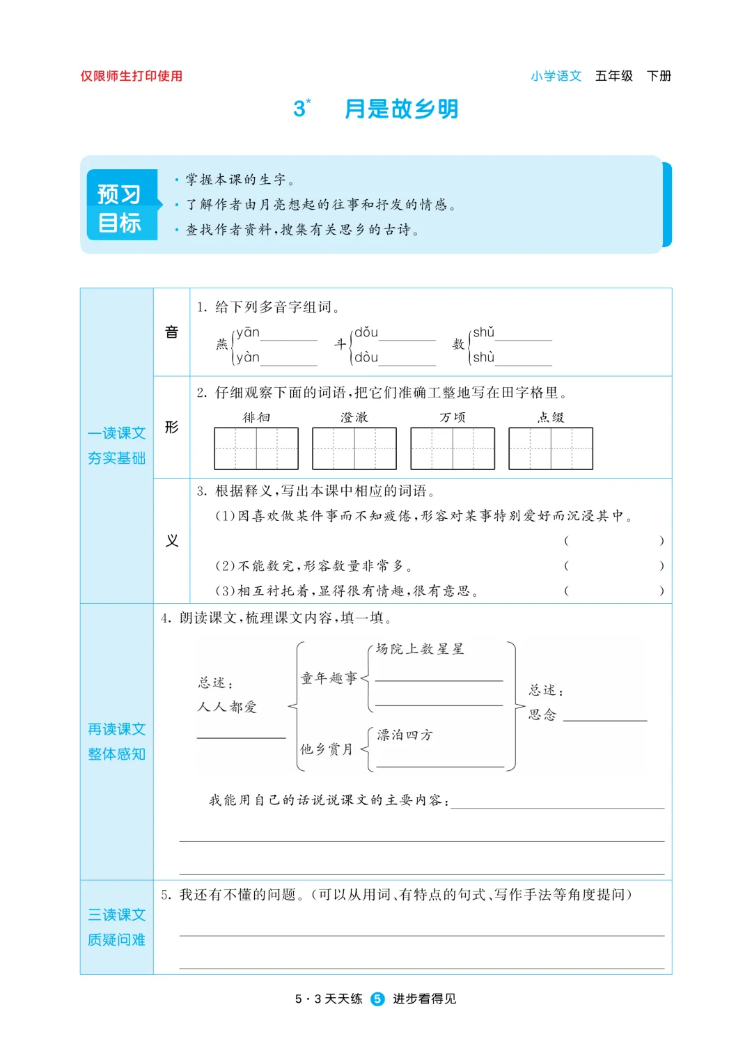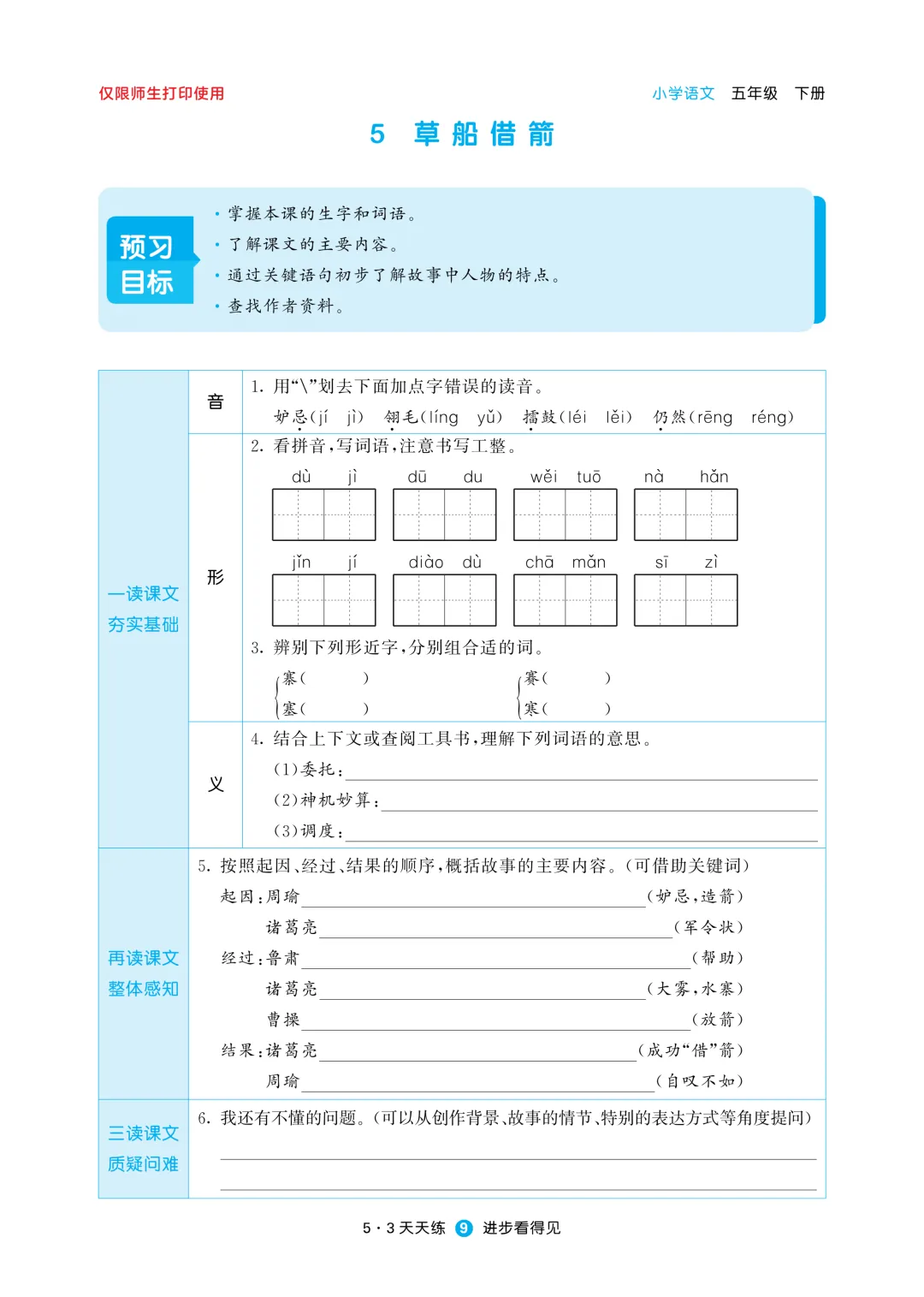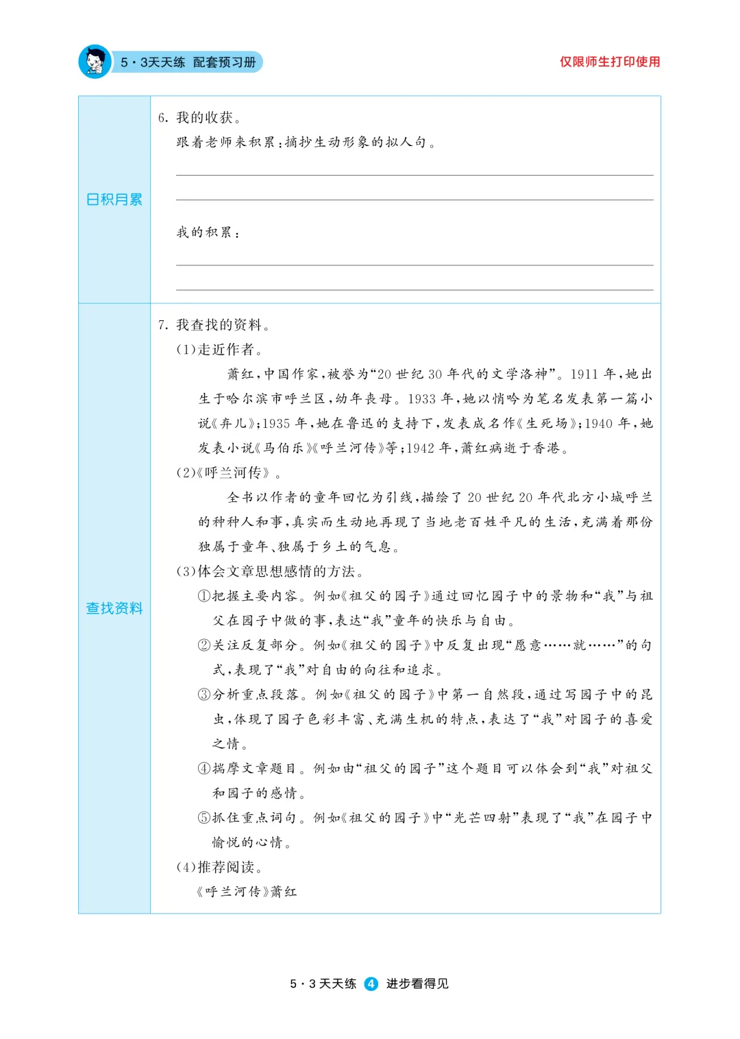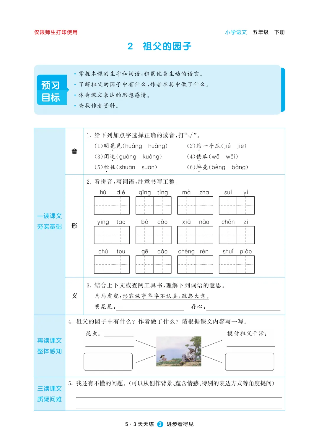 >学习资料|五下部编配套《预习册》(免费下载,含答案超实用)