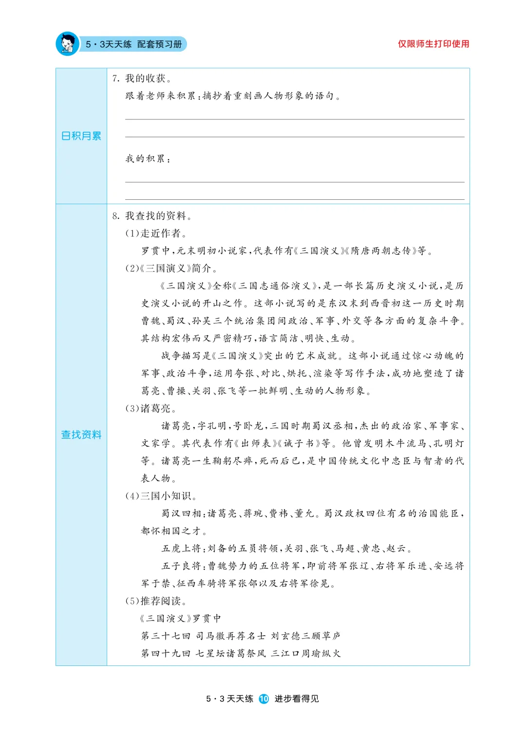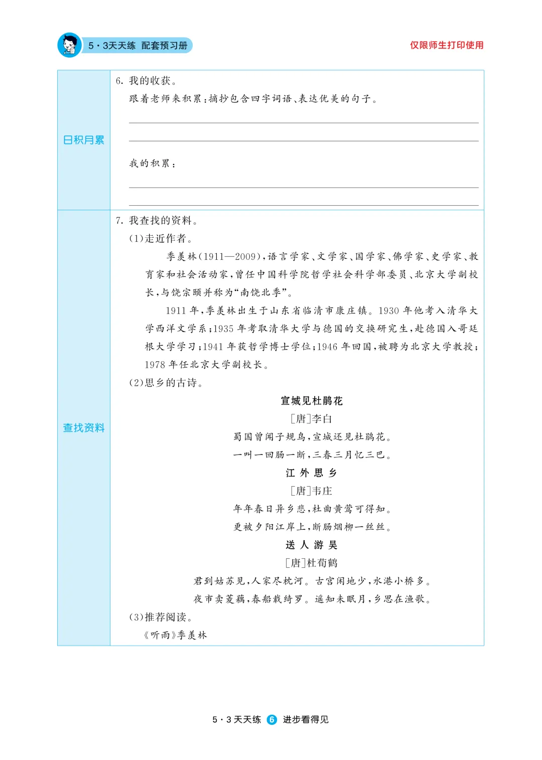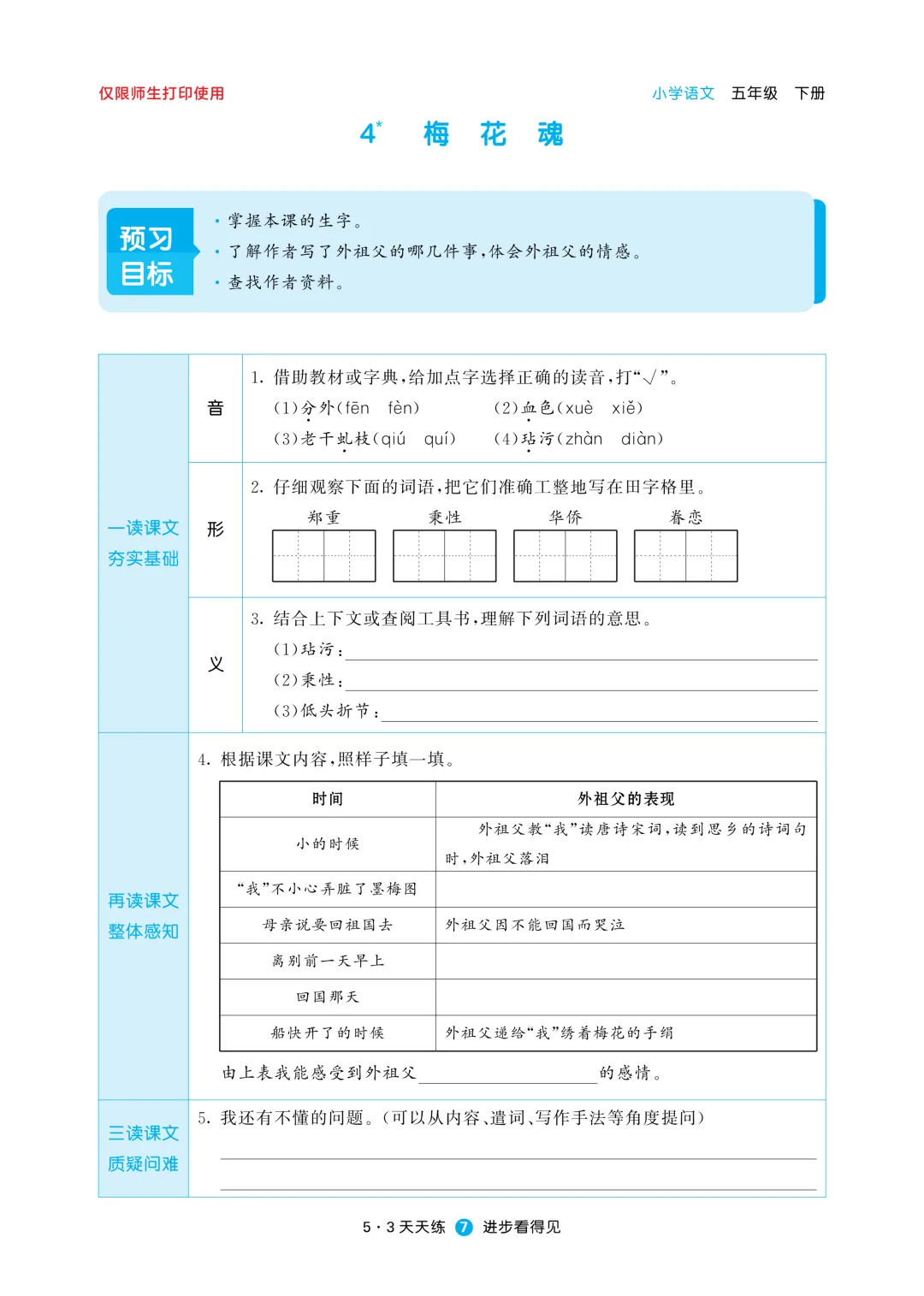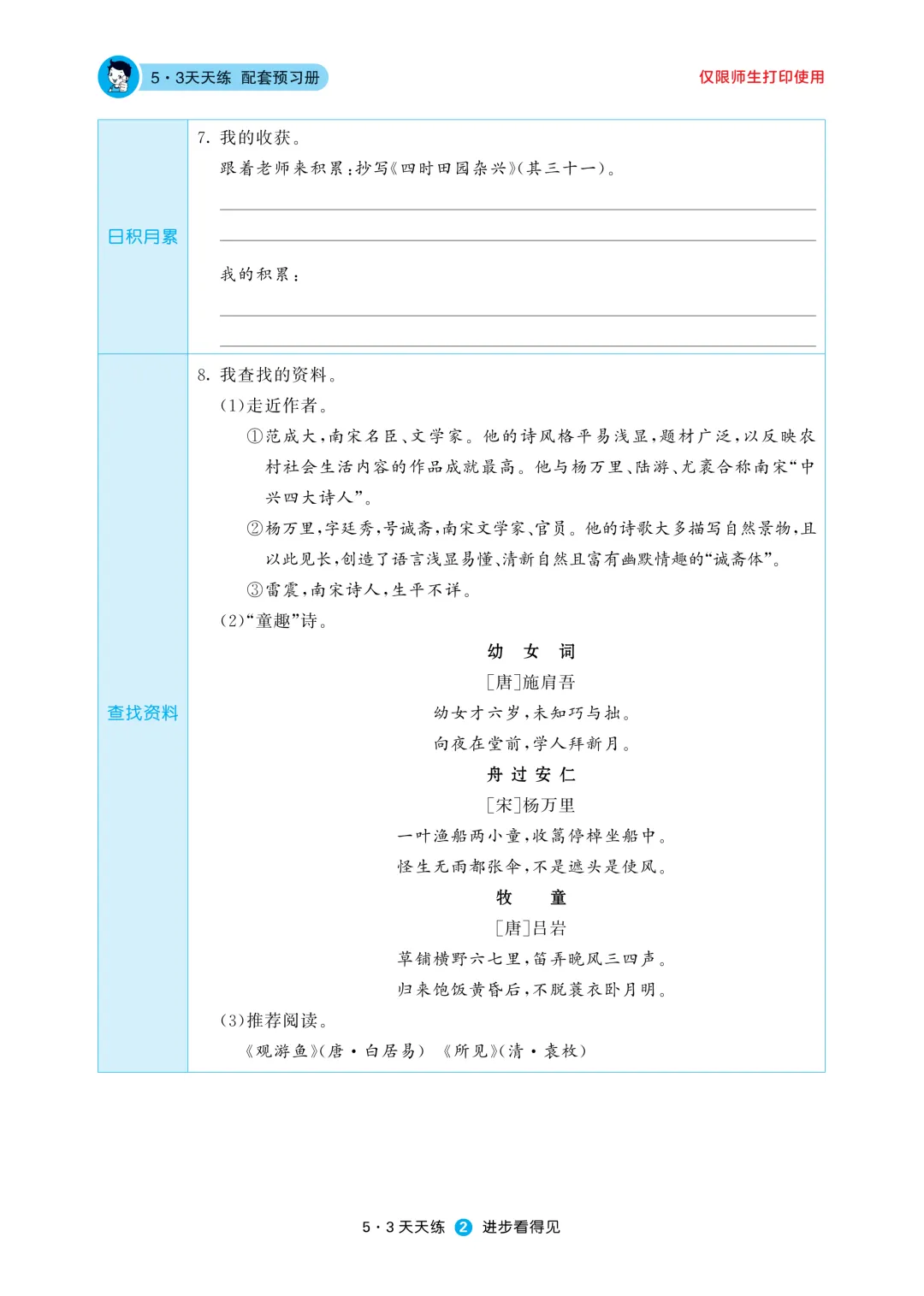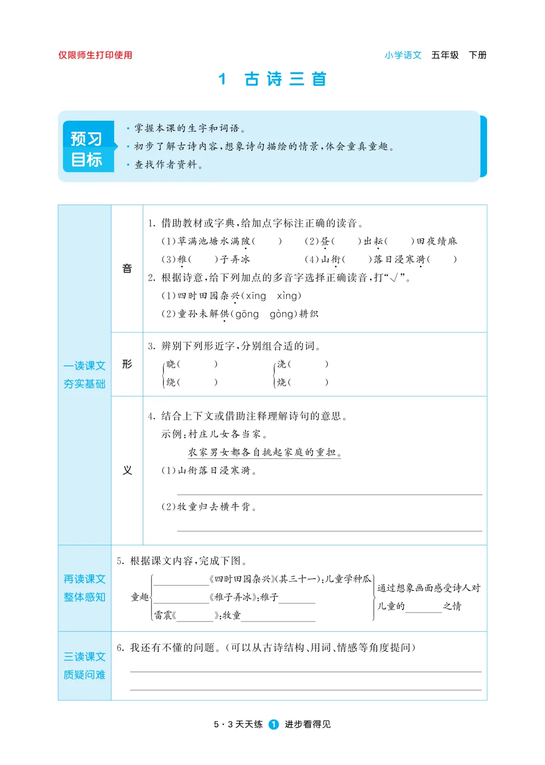 >学习资料|五下部编配套《预习册》(免费下载,含答案超实用)