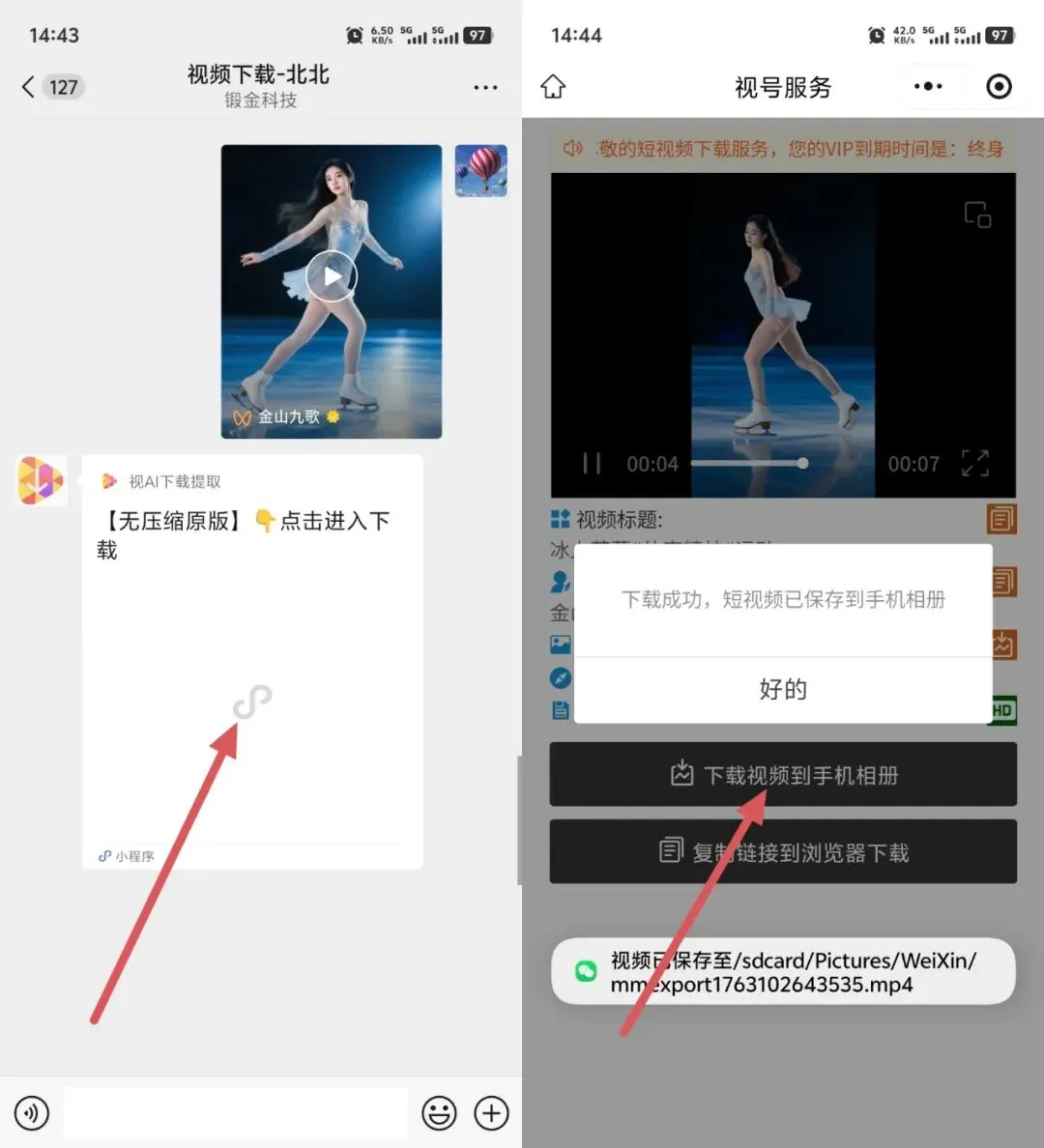 - 点击进入小程序,您会看到解析成功的视频。只需再次点击【一键下载】按钮,视频就会高清无损地保存到您的手机相册中!