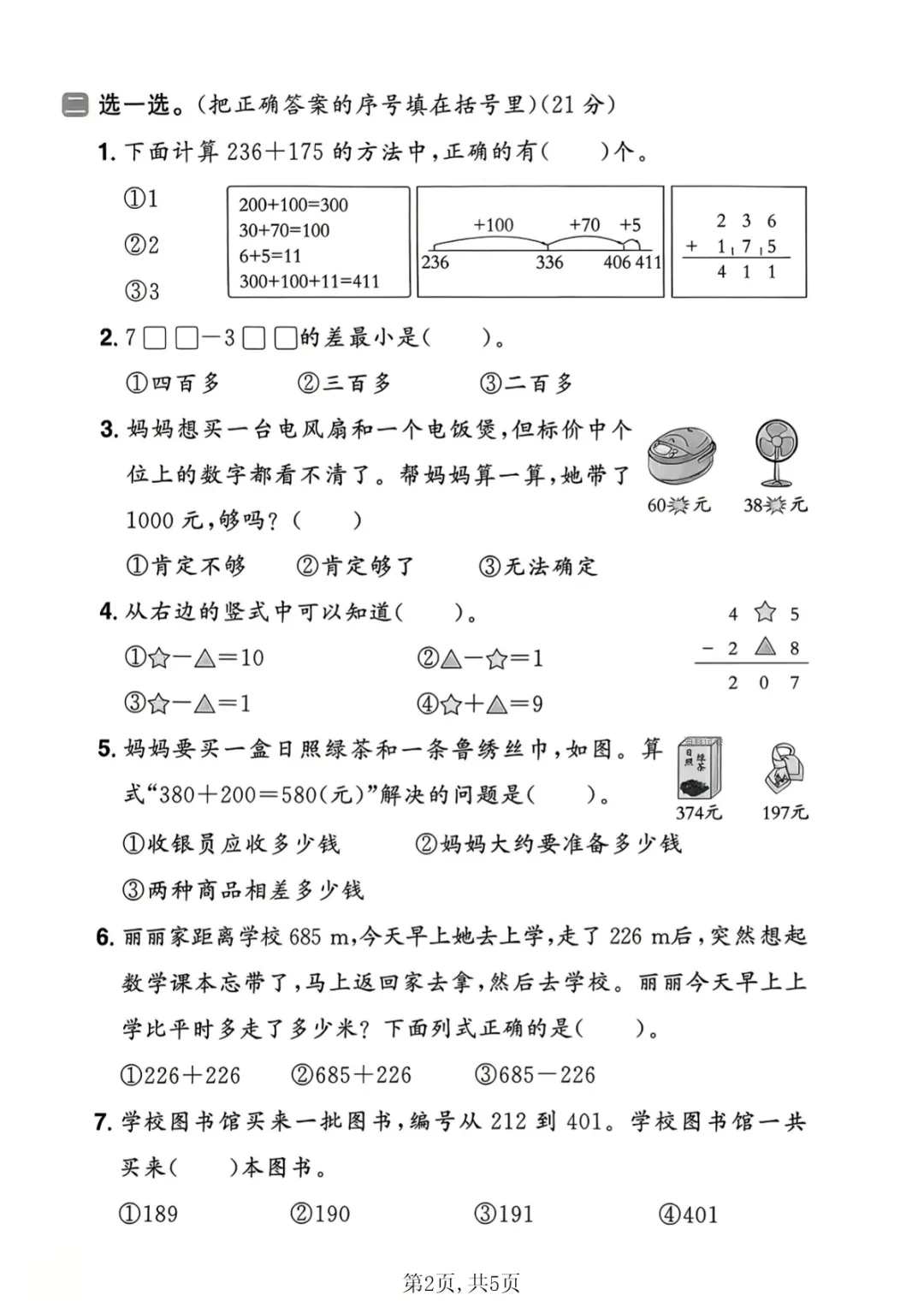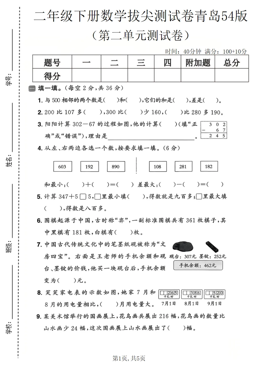 二年级(下)数学 第二单元拔尖测试卷《青岛54版》