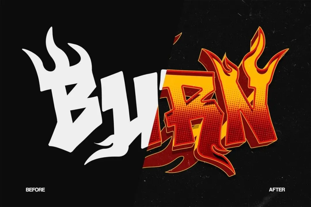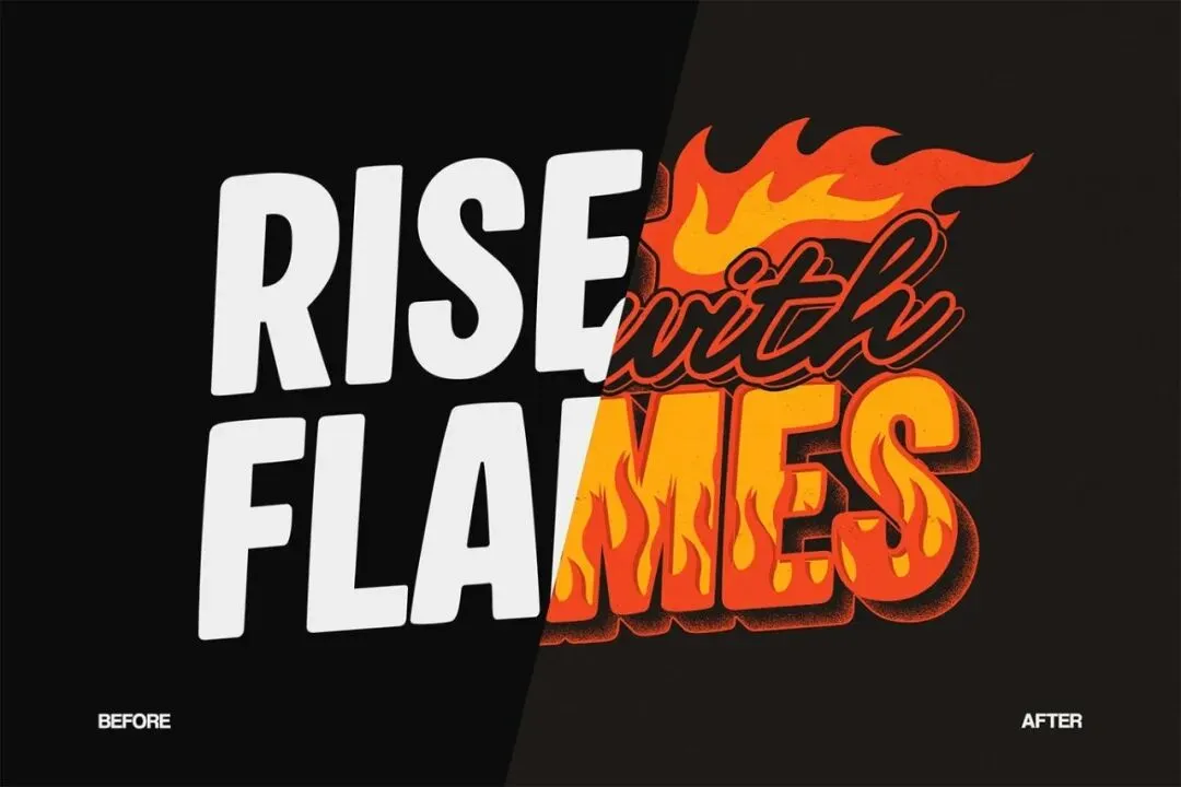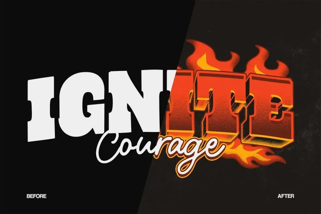 打造大胆有力的火焰文字风格,呈现火热、动态的视觉效果。非常适合需要强烈能量、强度和冲击力的设计。 这个文字效果可以用智能对象完全编辑。只需替换文本并保存即可。