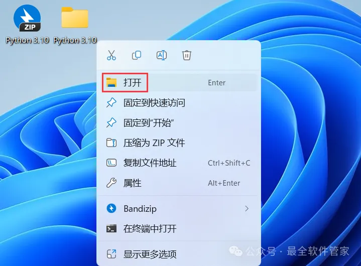 1、下载Python 3.10软件安装包到电脑上,右键选择【解压到Python 3.10\】