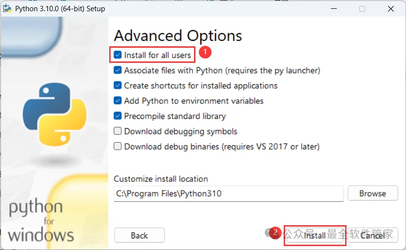 6、勾选【Install for all users】,再点击【Install】