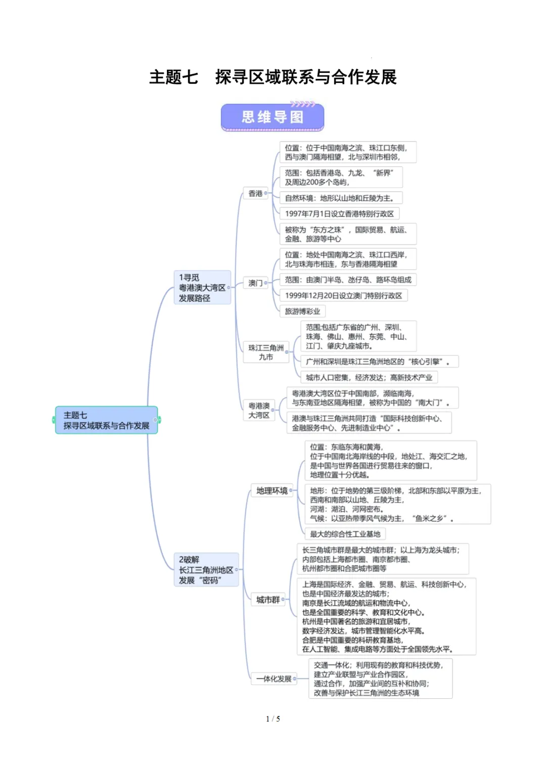 八年级(下)地理主题七探寻区域联系与合作发展 知识清单(晋教版)
