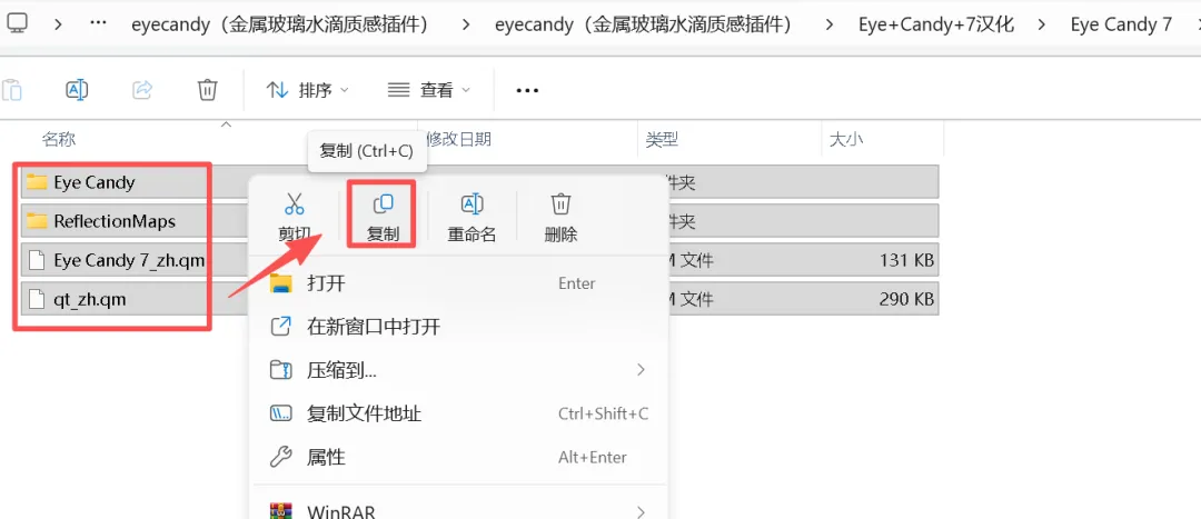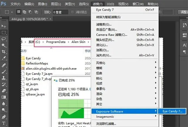 6、粘贴到软件安装目录下覆盖即可: C:\Program Files\Exposure Software\Eye Candy 7 ![]() 7、Eye Candy 7文件夹的所有文件全部选中复制