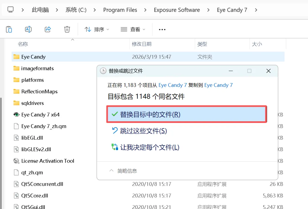 9、C:\Program Files\Exposure Software\Eye Candy 7 文件夹下,点击替换
