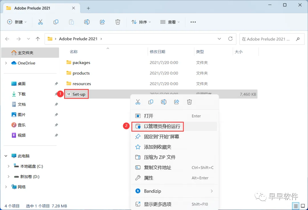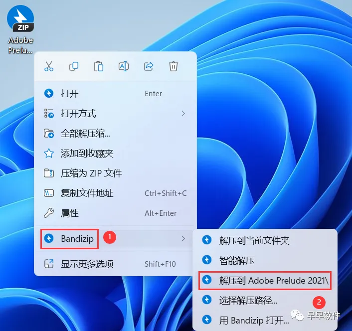 1、下载Adobe Prelude 2021软件安装包到电脑上,右键选择【解压到Adobe Prelude 2021\】