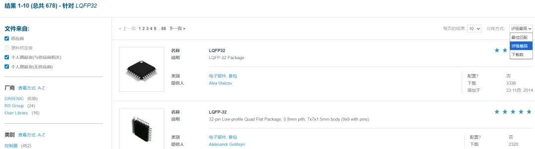 打开网站后,在搜索框输入自己需要的封装,比如:LQFP32