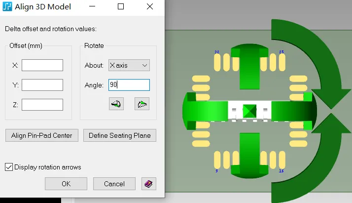 器件下载后,在导入PADS时,某些器件导入后是和PCB板垂直的,需要手动旋转90度。