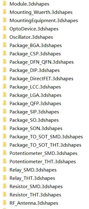 看了一下,这个文件包括了106种类型的器件文件夹,截取部分显示如下:
