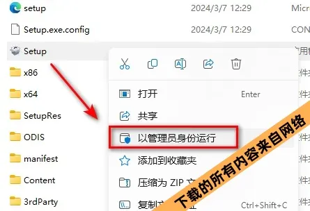 3.找到并选中Setup,鼠标右键选择“以管理员身份运行”