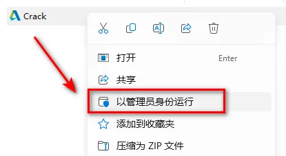 10.选中Crack,鼠标右键选择“以管理员身份运行”