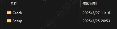 1、安装包下载到电脑本地,解压后得到一个激活文件(crack)和一个安装文件(setup)