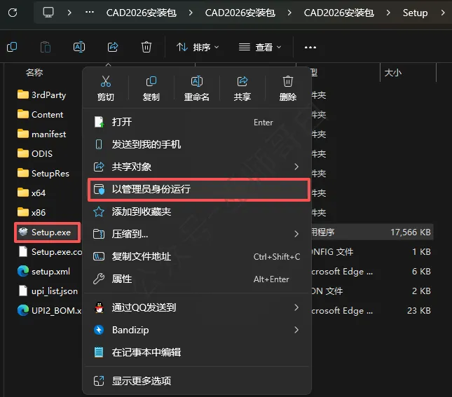 2、打开setup文件夹,找到setup.exe,点击鼠标右键,【以管理员身份运行】