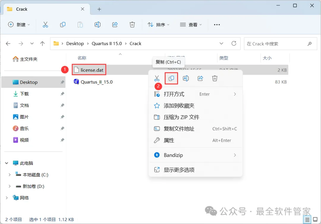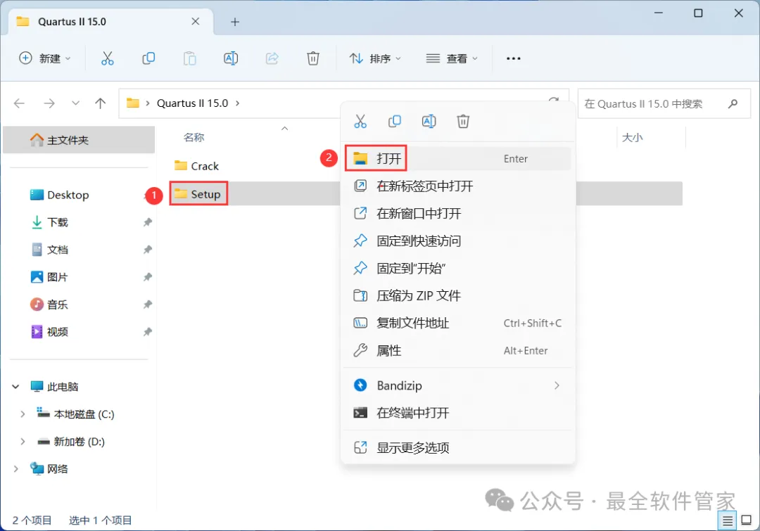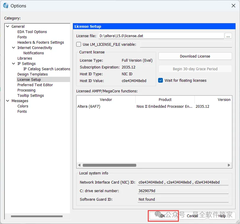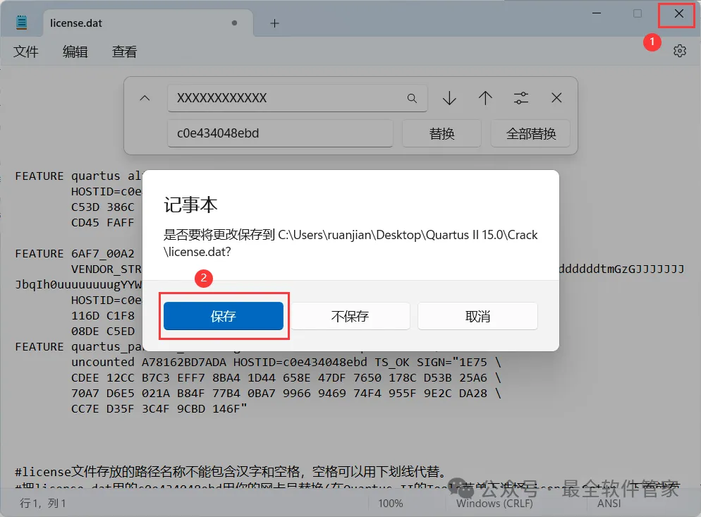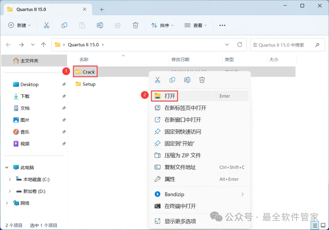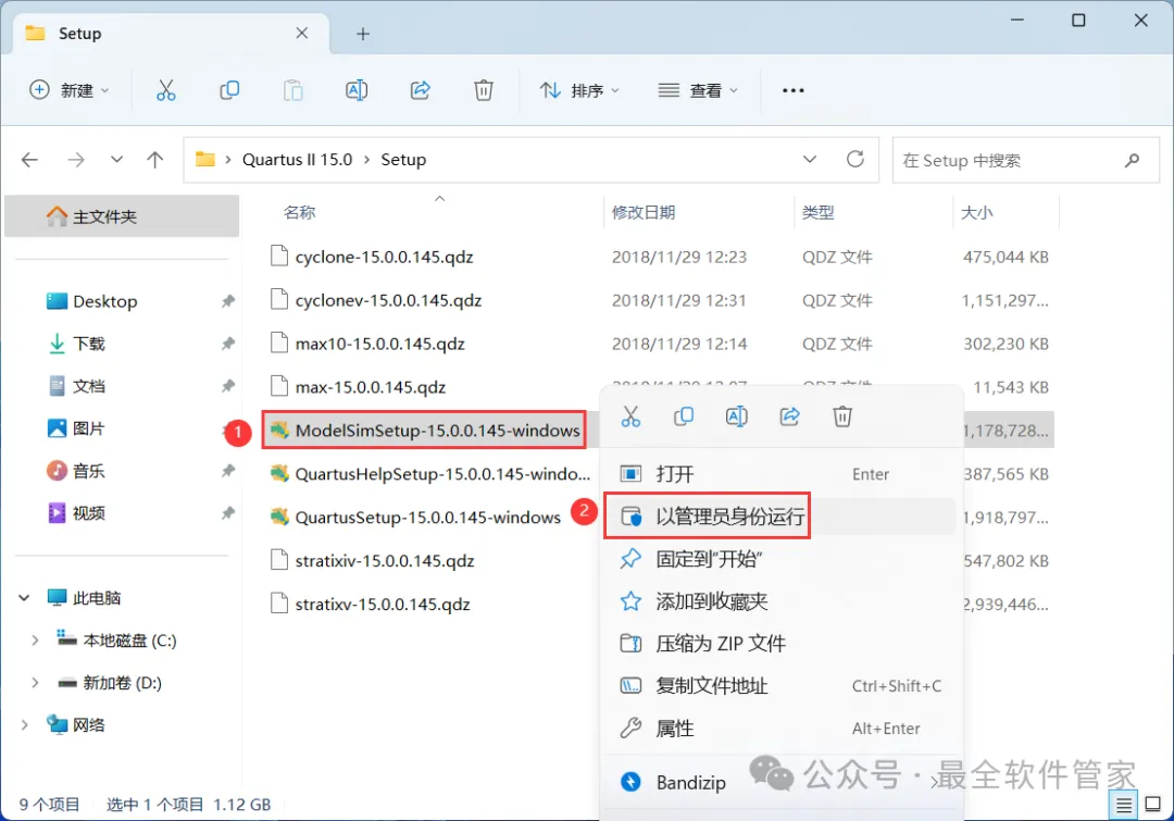 [不限速下载]:免费获取百度网盘不限速下载工具。公众号内回复:不限速[注意事项]:安装前请关闭网络、杀毒软件和防火墙,否则易安装失败。公众号内回复:1[解压软件]:小编用的解压软件是Bandizip,获取Bandizip软件安装包。公众号内回复:21、下载Quartus II 15.0软件安装包到电脑上,右键选择【解压到Quartus II 15.0\】4、找到【QuartusSetup-15.0.0】应用程序,右键选择【以管理员身份运行】它7、软件默认安装在C盘,可自定义更改软件安装位置,这里小编选择安装在D盘;点击【Next】11、不勾选【Launch USB…】,再点击【Finish】14、回到Setup文件夹,找到【ModelSimSetup-15.0.0】应用程序,右键选择【以管理员身份运行】它18、软件默认安装在C盘,可自定义更改软件安装位置,这里小编选择安装在D盘;点击【Next】23、回到Quartus II 15.0文件夹,找到【Crack】文件夹,右键【打开】它24、找到【Quartus_II_15.0】应用程序,右键选择【以管理员身份运行】它26、选择路径:D:\altera\15.0\quartus\bin64,找到并选中【gcl_afcq.dll】文件,再点击【打开】31、回到桌面,右键桌面上的【Quartus II 15.0软件图标】,点击【打开】32、勾选【Start the…】,再点击【OK】33、依次点击【Tools】、【License Setup…】34、回到Crack文件夹,找到【license.dat】文件,右键点击【打开方式】36、按下记事本的替换快捷键【Ctrl+H】,第一栏输入:XXXXXXXXXXXX,打开软件界面,将软件的【NIC ID】填入到记事本的【第二栏】内,再点击【全部替换】38、回到Crack文件夹,找到【license.dat】文件,再右键点击【复制按钮】39、打开路径:D:\altera\15.0,再右键文件夹的空白处,点击【粘贴按钮】41、选择路径为D:\altera\15.0,找到并选中【license.dat】文件,再点击【打开】44、以上就是Quartus II 15.0软件安装的全过程,要是对你有帮助的话,请为小编点个赞!免责声明:软件资源均来源于网络,仅供用户交流学习与研究使用,版权归属原版权方所有,版权争议与本公众号无关,用户本人下载后不能用作商业或非法用途,否则后果均由用户承担责任;如果您访问和下载此文件,表示您同意只将此软件用于参考、学习而非其他用途,否则一切后果请您自行承担,请于下载后24小时内删除,不允许用于商业用途,否则法律问题自行承担。如果您喜欢该软件,请支持正版软件,购买注册,得到更好的正版服务。