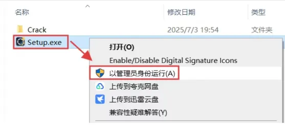 3.选中【Setup】程序,鼠标右键点击【以管理员身份运行】。