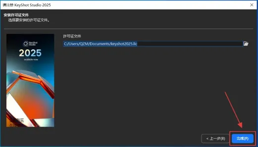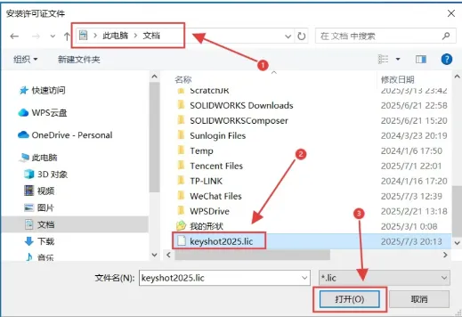24.打开激活步骤8文件保存的路径,选中【Keyshot2025.lic】文件,然后点击【打开】。