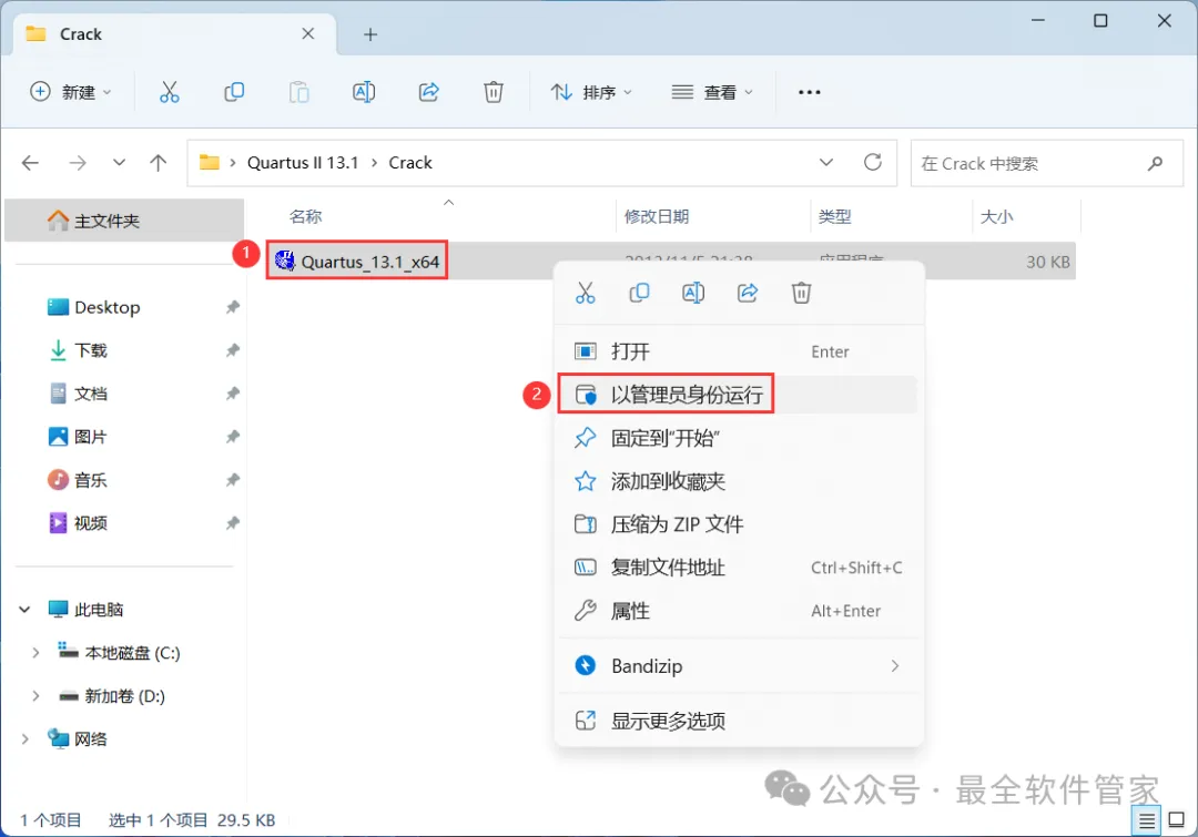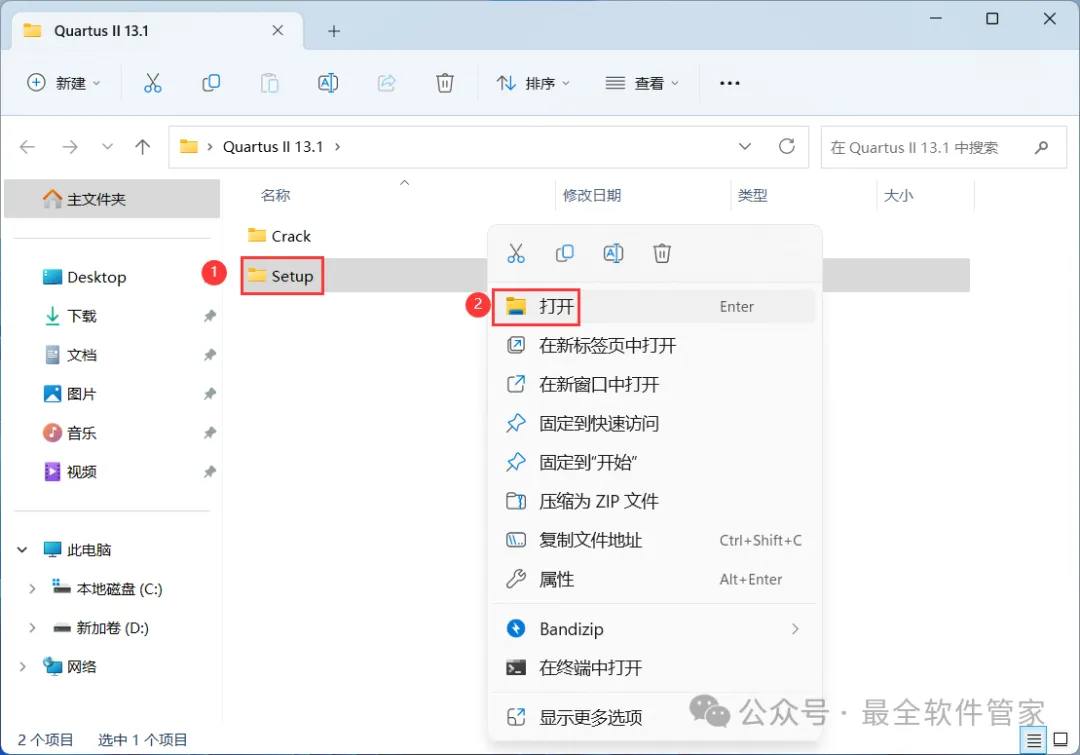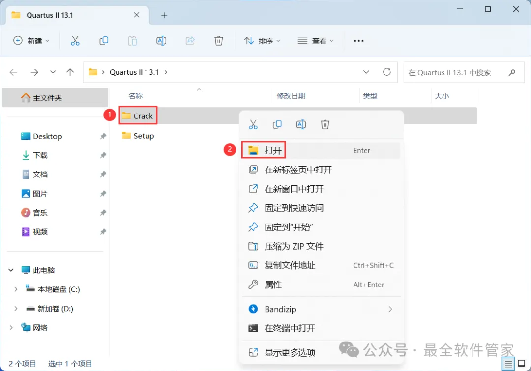 23、回到Quartus II 13.1文件夹,找到【Crack】文件夹,右键【打开】它
