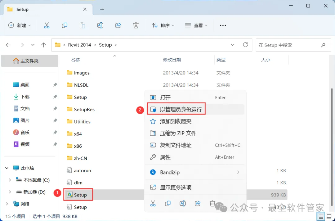 4、找到【Setup】应用程序,右键选择【以管理员身份运行】它