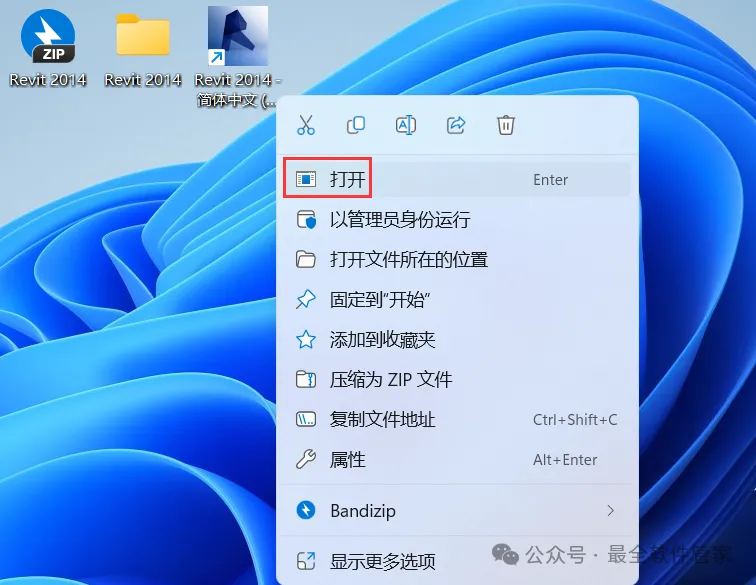 11、回到桌面,右键桌面上的【Revit 2014软件图标】,点击【打开】