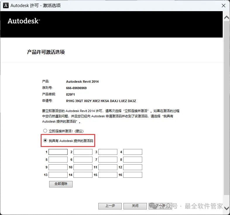 17、点击【我具有Autodesk提供的激活码】