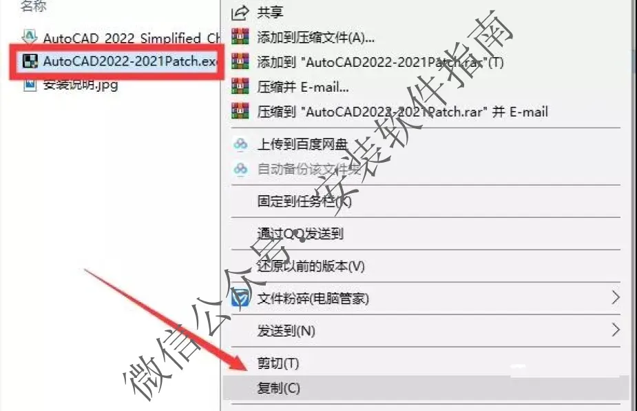 10、回到最开始解压的安装包,复制AutoCAD2022-2021Patch.exe这个文件