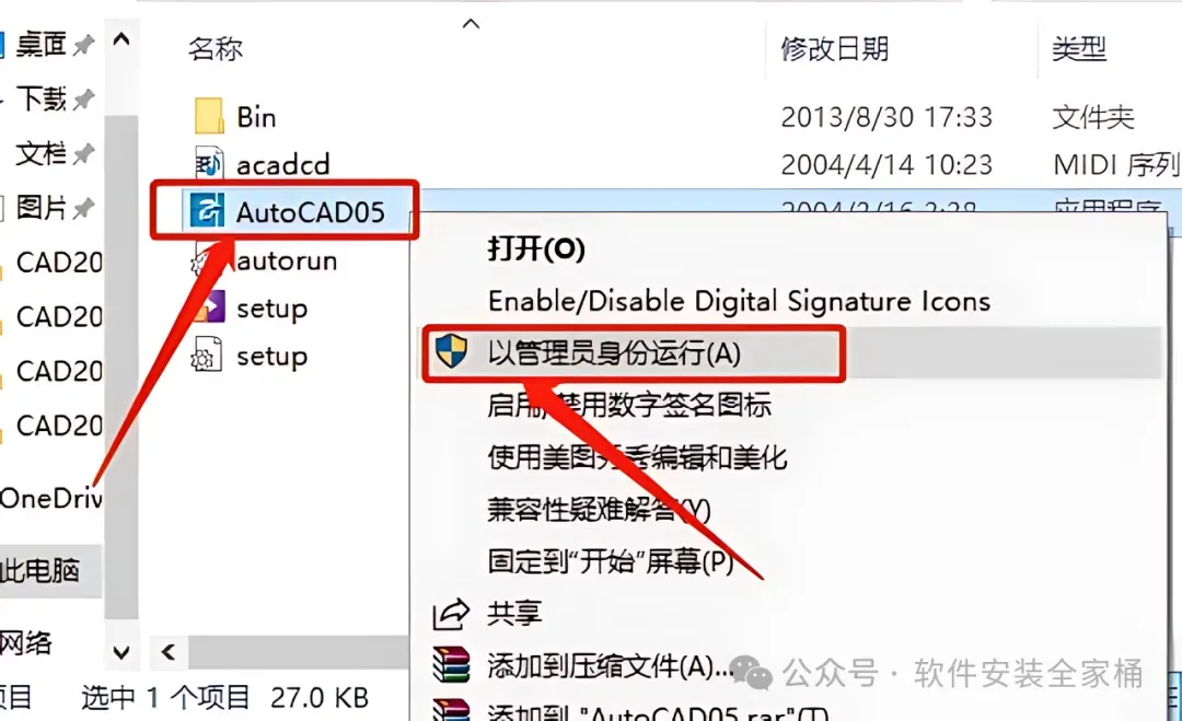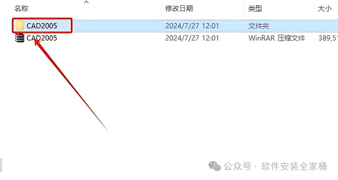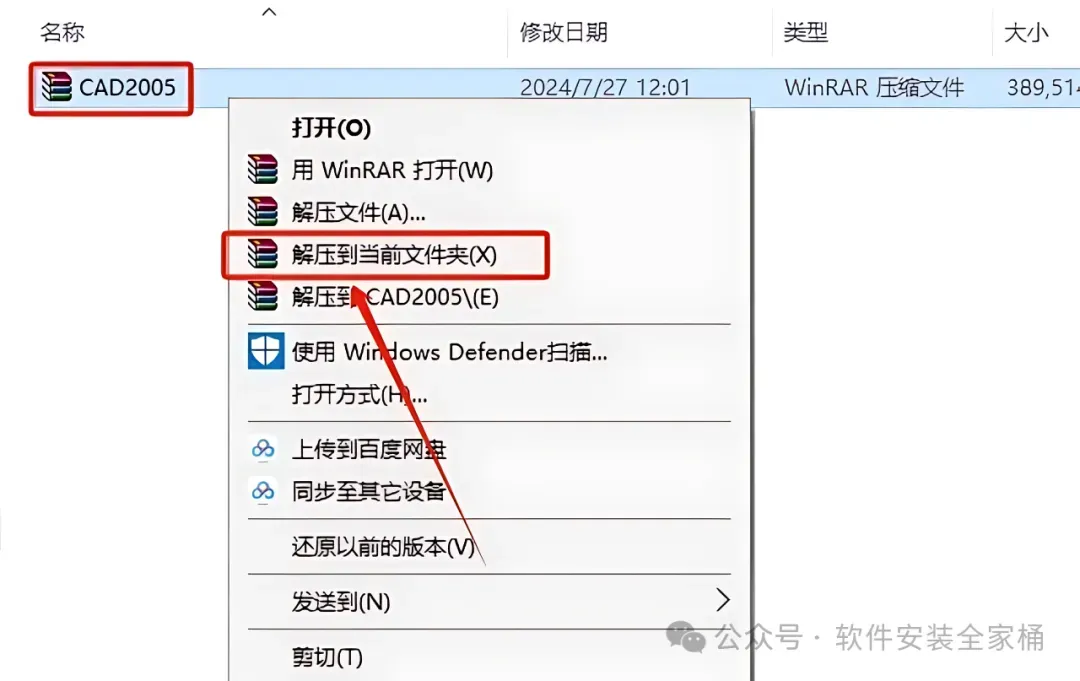 1.鼠标右击【CAD2005】选择【解压到当前文件夹】。