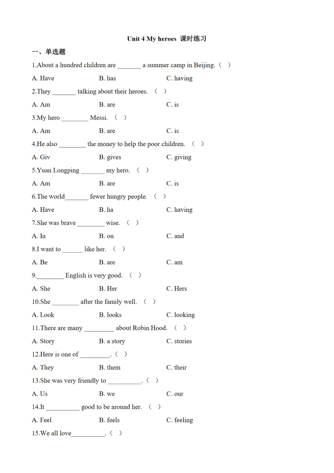 >【免费下载】Unit 4 同步练习【外研Join in】六下英语一课一练,WORD电子版,可编辑,可打印