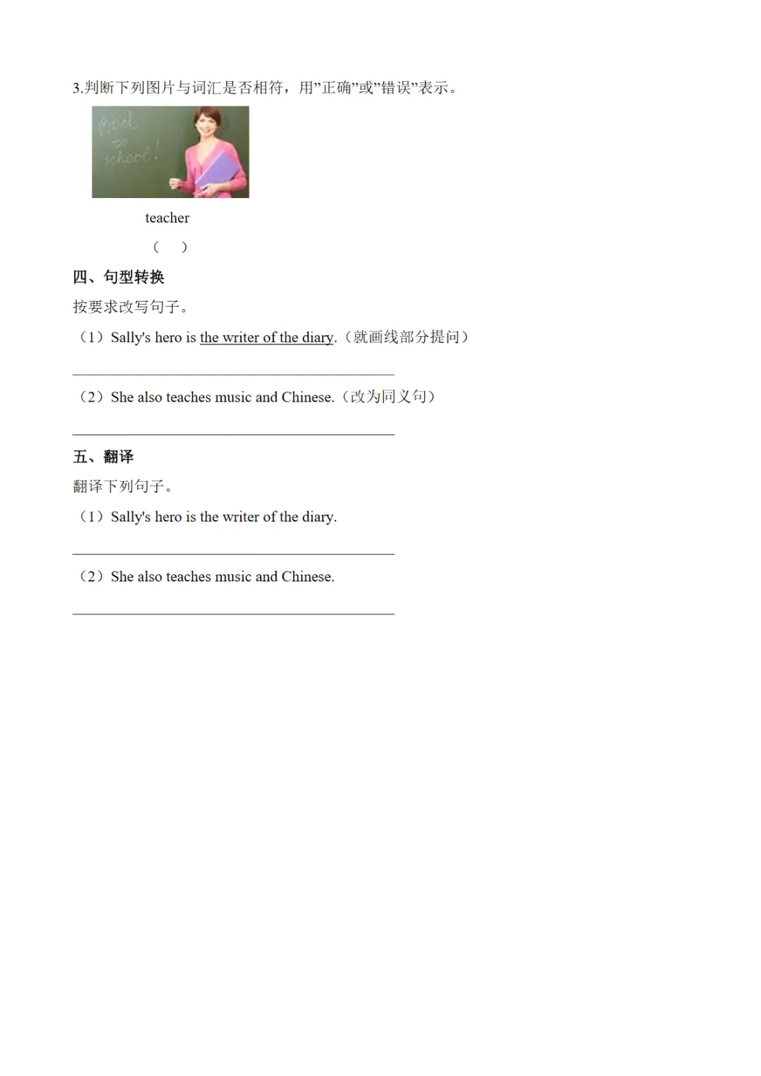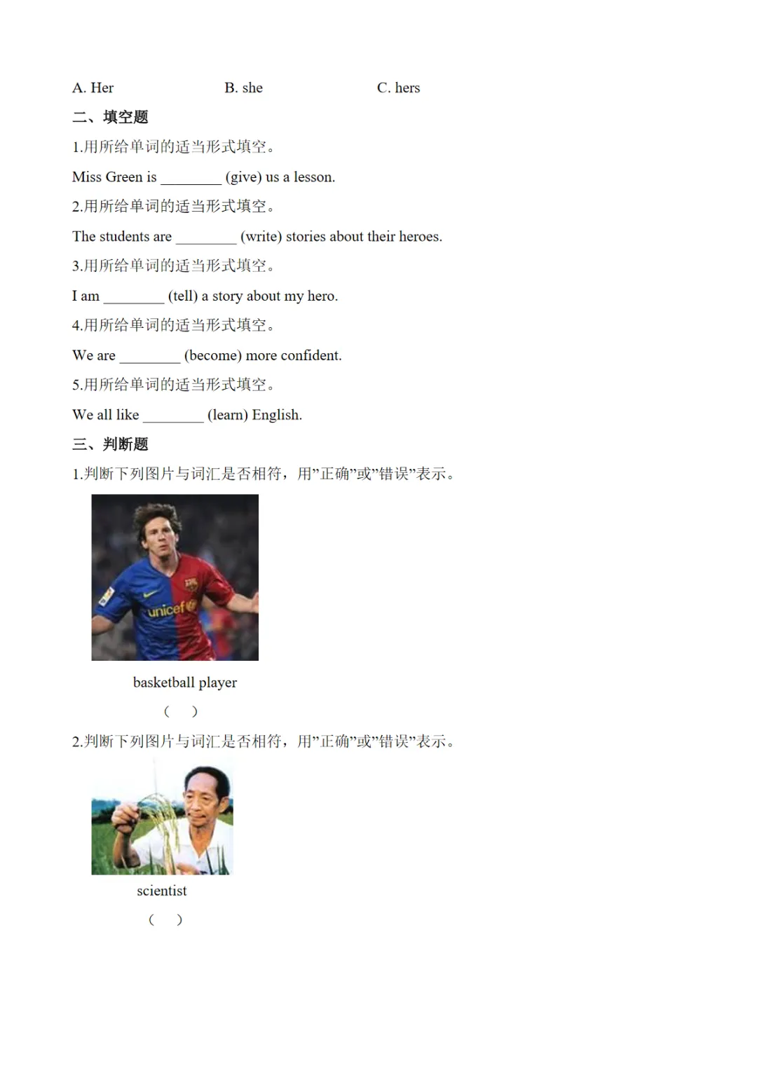 【免费下载】Unit 1 Lesson 5 Unit review 同步练习(含答案)【冀教】三下英语同步练习,WORD电子版,可编辑,可打印