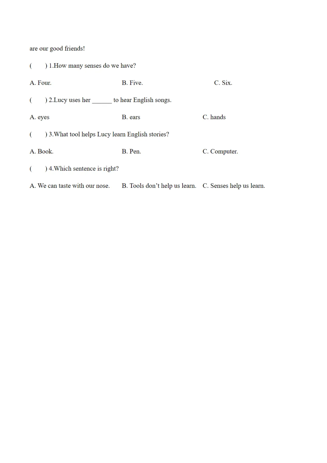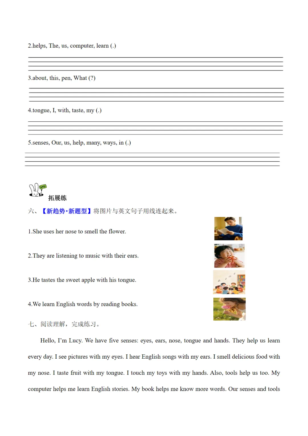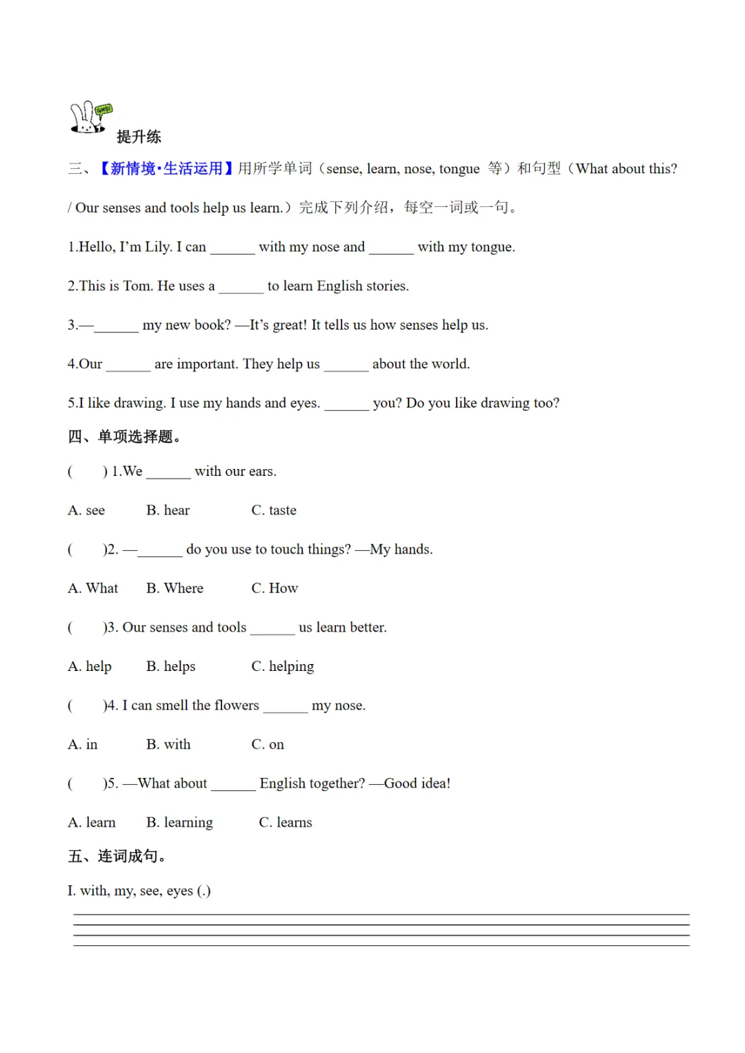 【免费下载】Unit 1 Lesson 5 Unit review 同步练习(含答案)【冀教】三下英语同步练习,WORD电子版,可编辑,可打印