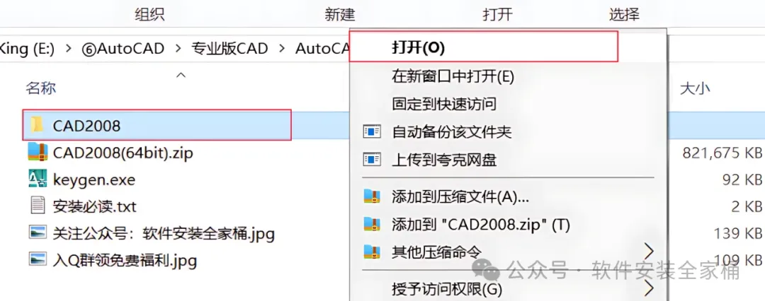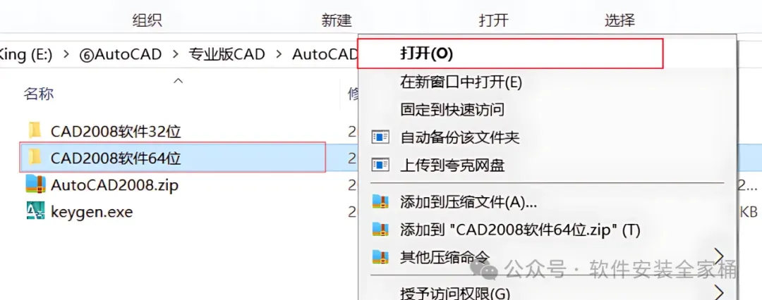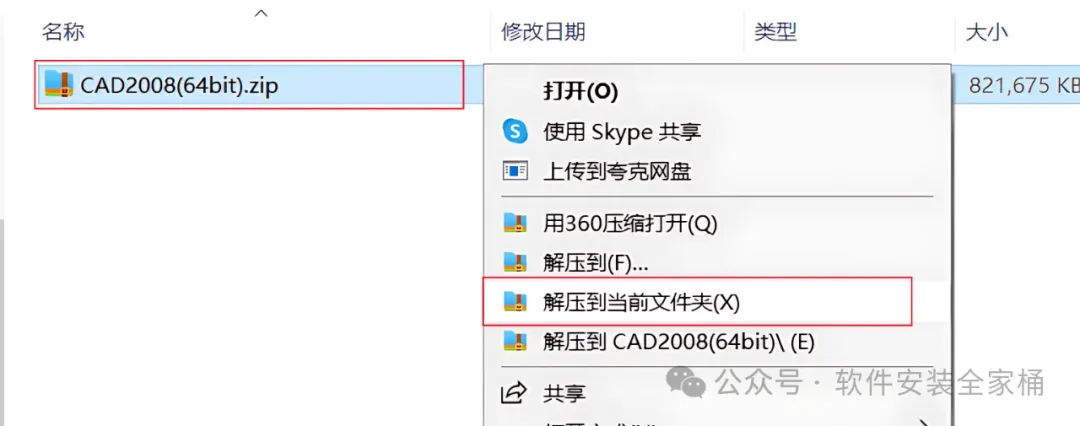1.打开下载好的CAD安装包,然后鼠标右击压缩包,选择【解压到当前文件夹】。