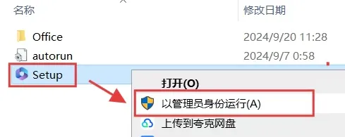 2、打开setup文件夹,找到setup.exe,点击鼠标右键,【以管理员身份运行】