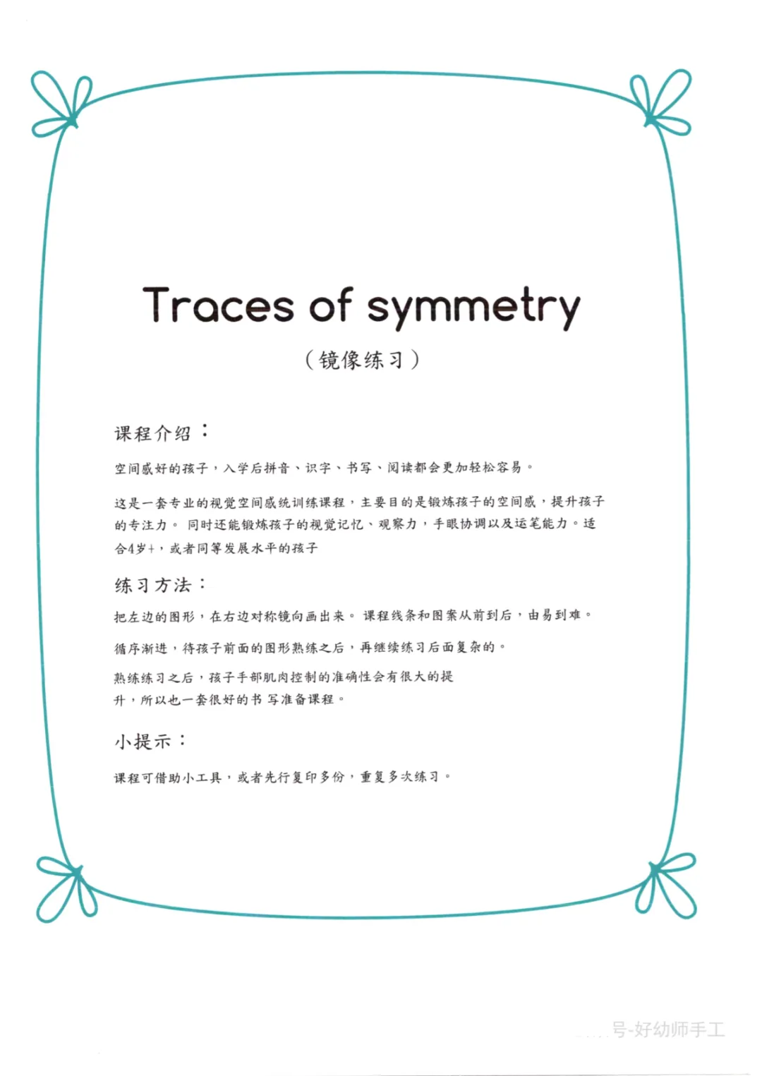 幼儿专注力视觉空间感统训练之镜像练习