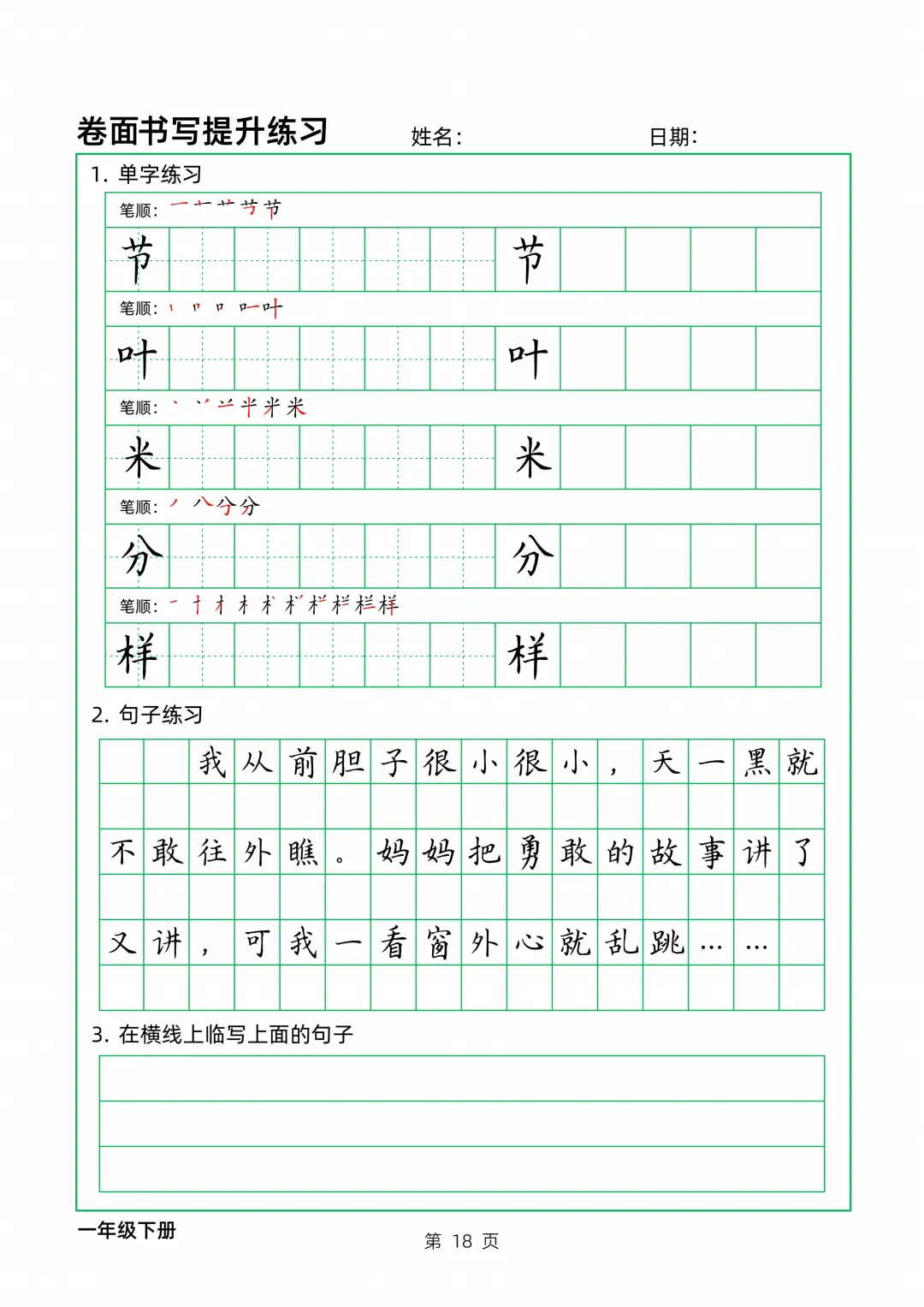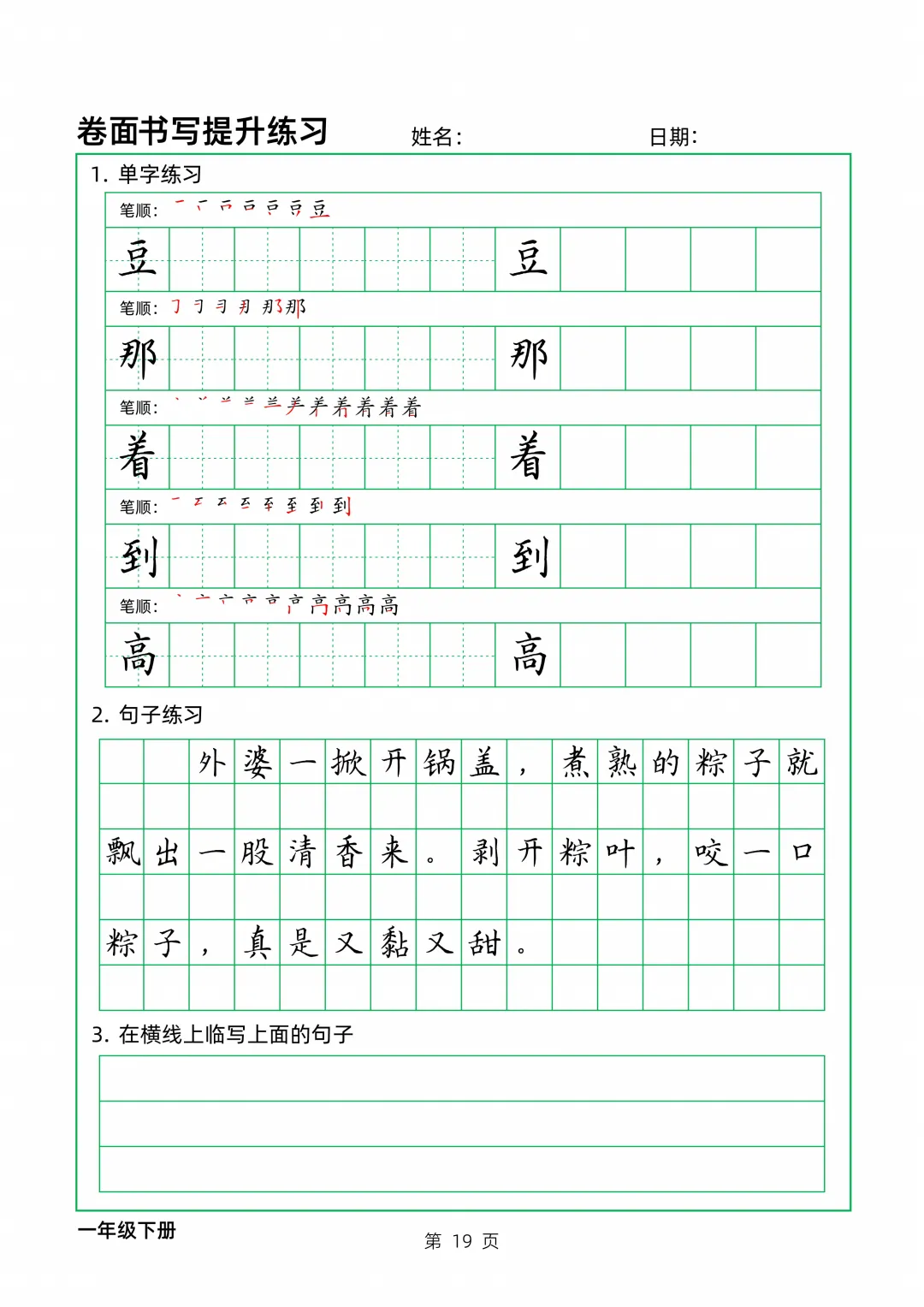 今天,老师给大家准备了一年级下册卷面实用书写训练,可以收藏起来,打印给孩子慢慢练哦。