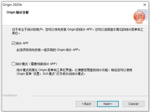 8、Origin 统计分析选择,勾选【统计 APP】点击【Next】