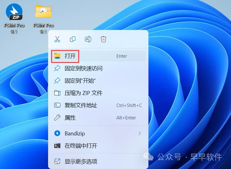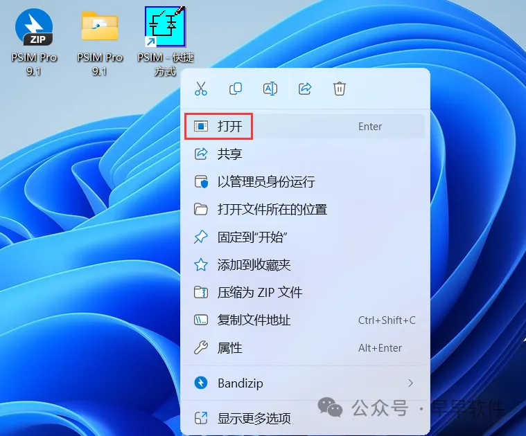 8、回到桌面,右键桌面上的【PSIM软件图标】,点击【打开】