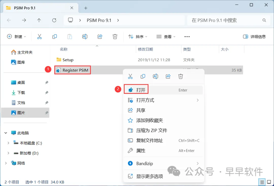 3、找到【Register PSIM】文件,右键【打开】它