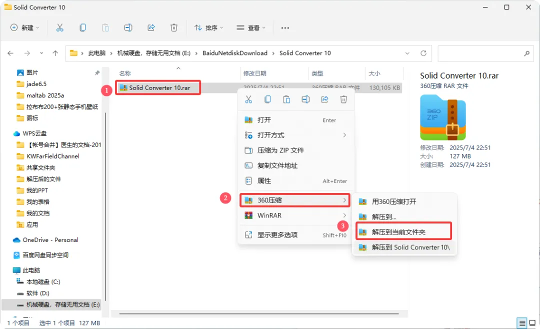 1.右击【Solid Converter 10】,选择【解压到Solid Converter 10】文件夹。