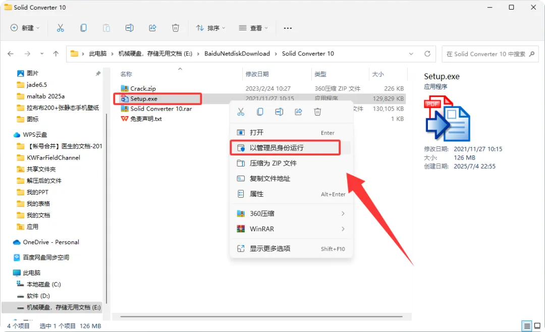 2.进入【Solid Converter 10】文件夹,以管理员身份运行【Setup】。