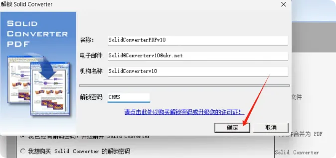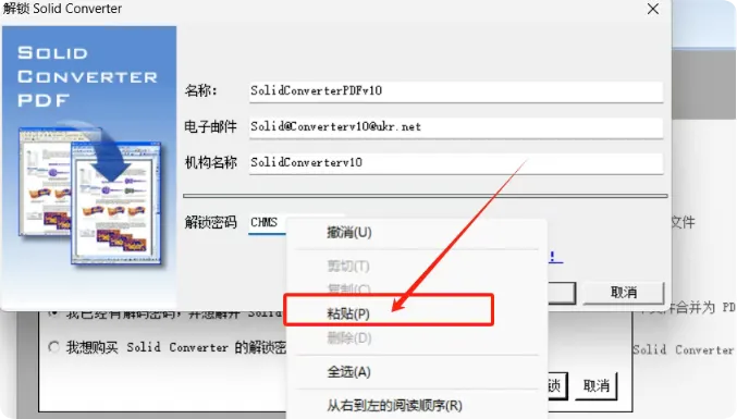 11.在名称栏输入【SolidConverterPDFv10】,在电子邮件栏输入【Solid@Converterv10@ukr.net】,在机构名称栏输入【SolidConverterv10】。(不要关闭此界面)