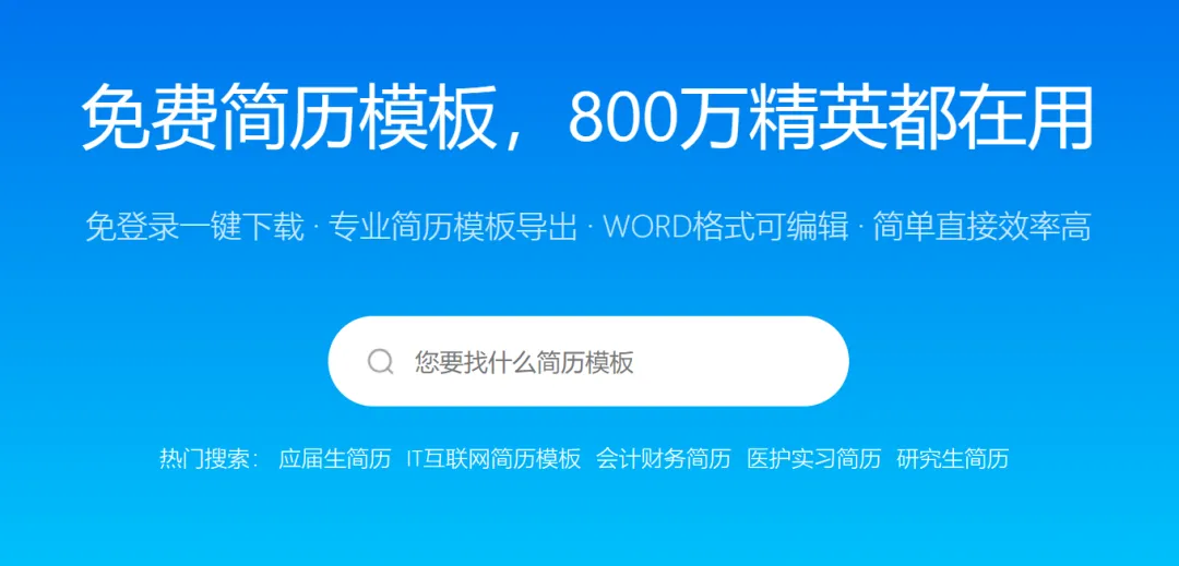 这是一个专门提供简历模板下载的网站,主打免费、无需注册登录。打开网页后,不需要任何复杂操作,就可以直接浏览并下载各种简历模板,整体使用方式非常简单,对新手也十分友好。