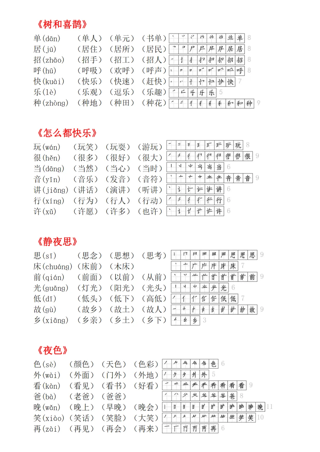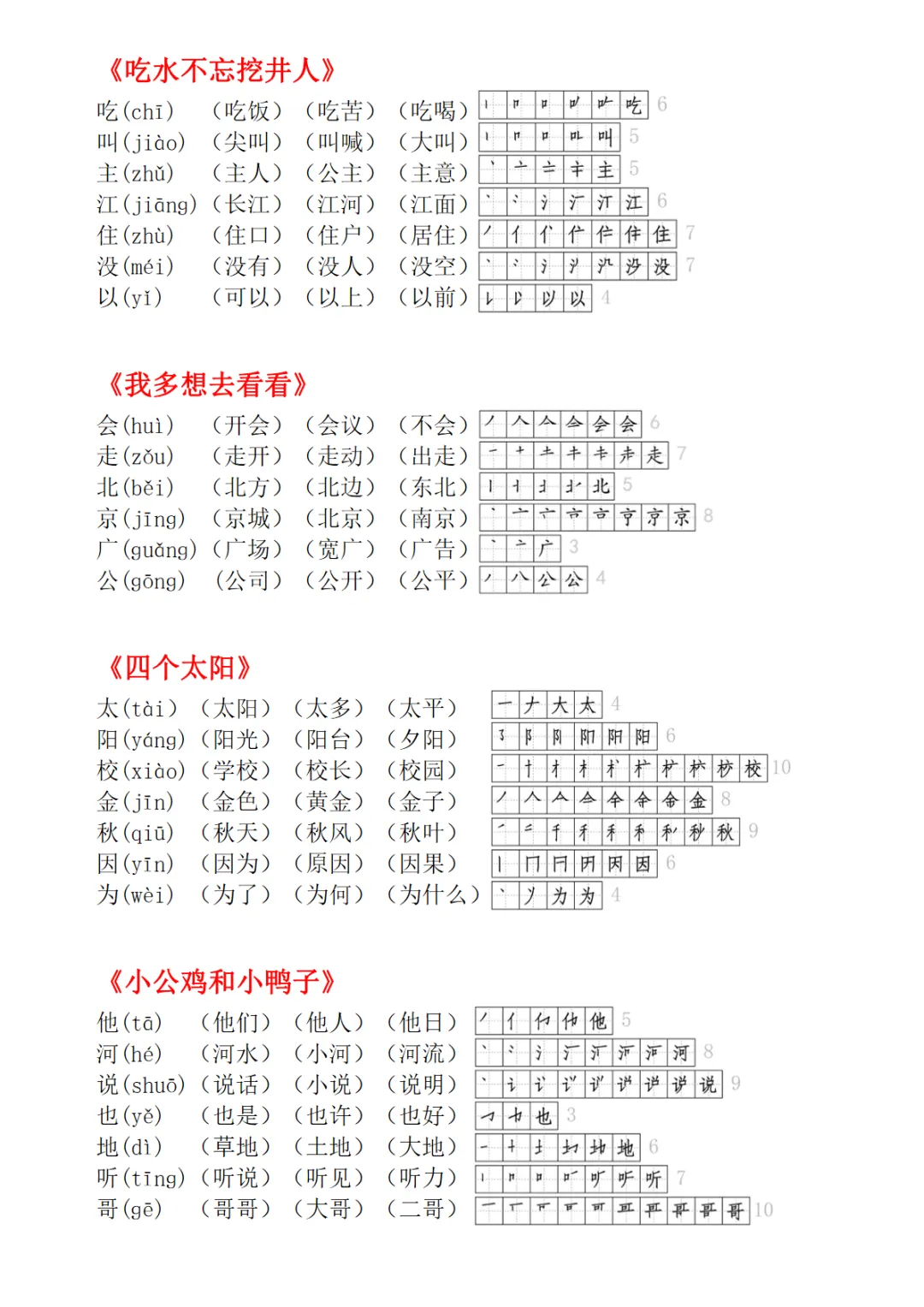 一年级下册生字拼音组词笔顺(打印出来无水印)