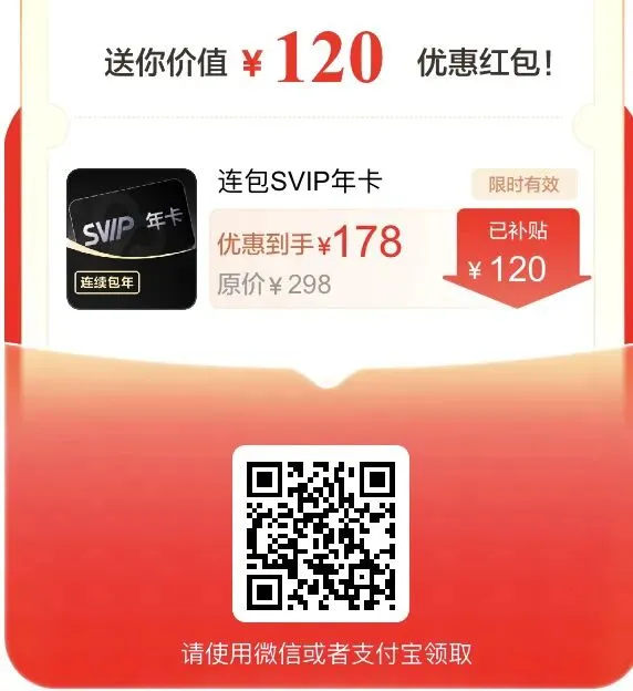 原价298的SVIP年卡,新用户只要【188】!月卡只要【18】!
