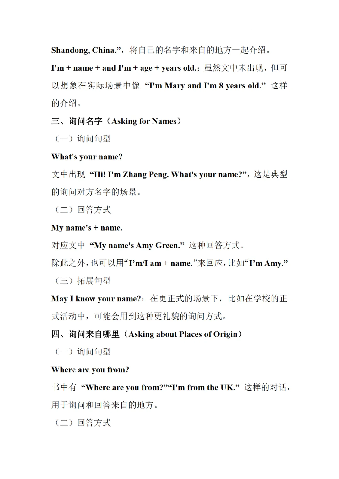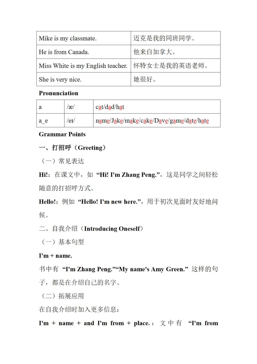 Unit 1 Meeting new people(知识清单)【人教pep】三下英语