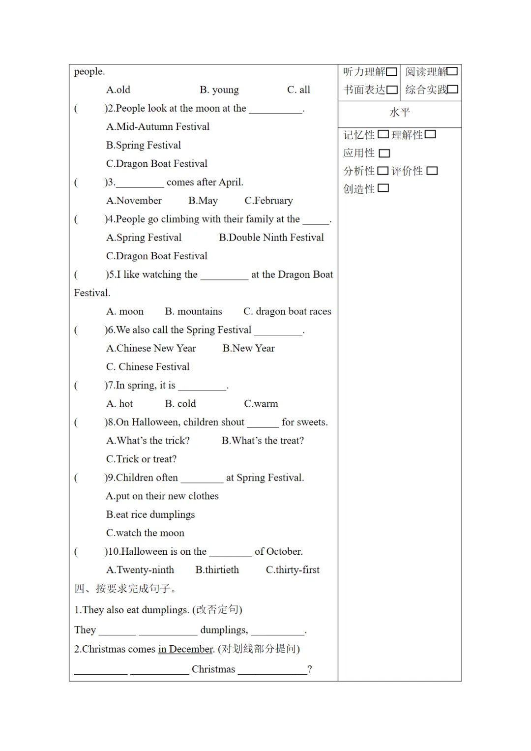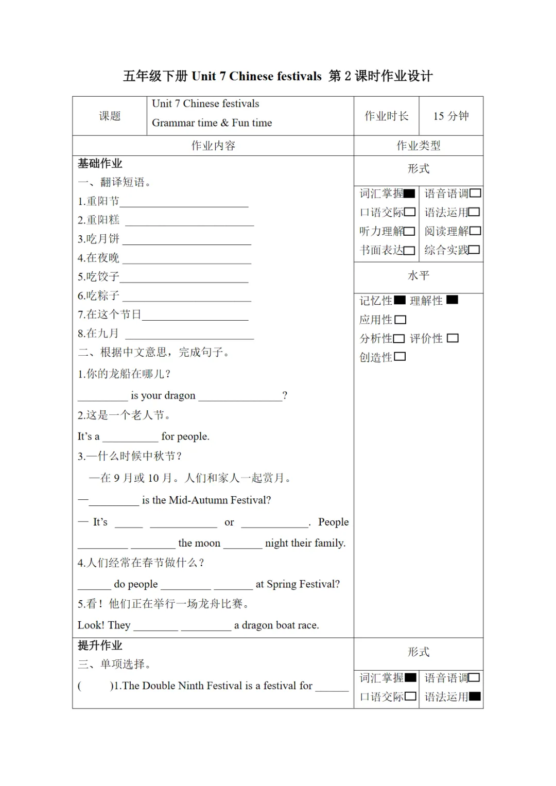 >【免费下载】Unit7 第2课时(分层作业)Grammar time & Fun time-(译林版三起),WORD电子版,可编辑,可打印