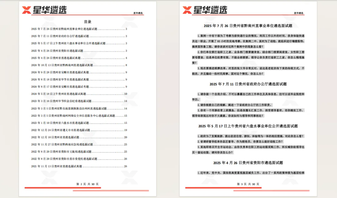 历年真题是把握命题规律、规避答题套路的核心资料。为帮大家高效备考,我们整理了20套贵州遴选历年面试真题+答案解析,免费下载,直接领取,提前锁定面试高分!