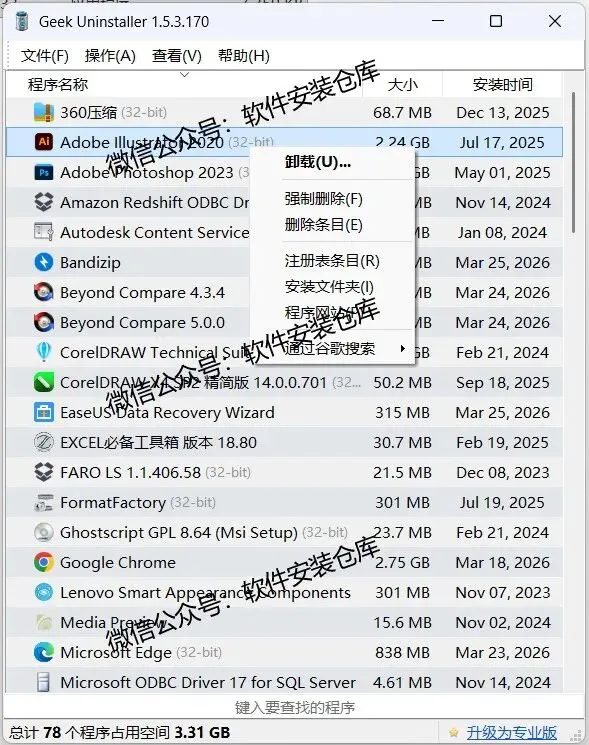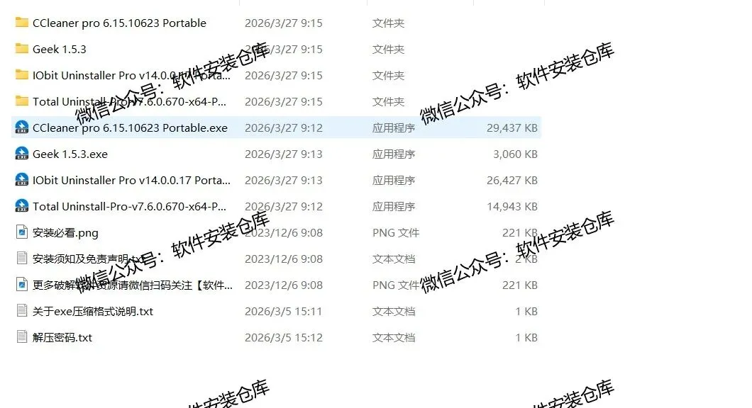 本卸载工具合集专为 Windows 系统打造,解决系统自带卸载功能清理不彻底、顽固软件难删除、残留垃圾堆积导致卡顿等问题,集轻量、强力、深度清理于一体,适配日常维护与专业清理需求。合集包含多款口碑工具:Geek Uninstaller 单文件便携、无广告,一键扫描删除文件与注册表残留,适合快速清理;IObit Uninstaller 支持批量卸载、强制移除捆绑软件,可清理浏览器插件与冗余启动项;HiBit Uninstaller 免费全能,兼顾注册表清理、右键管理、空文件夹删除;Revo Uninstaller 深度扫描系统痕迹,彻底清除隐匿残留;BCUninstaller 开源批量卸载,适配冷门软件规则。工具均无捆绑、界面简洁,普通用户可一键操作,技术用户可自定义清理规则。既能高效卸载常规应用,也能强力处置流氓软件与无法正常卸载的程序,减少系统冗余,释放磁盘空间,提升运行流畅度,是电脑日常维护的实用工具箱。
